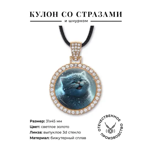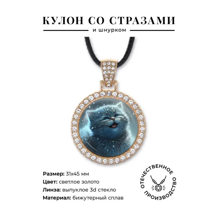 Кулон со стразами Кот и снегопад, цвет светлое золото ALKS0116