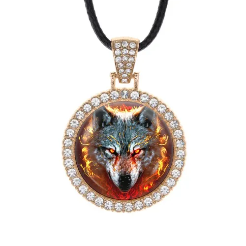 Кулон со стразами Огненная волчица, цвет светлое золото ALKS0145