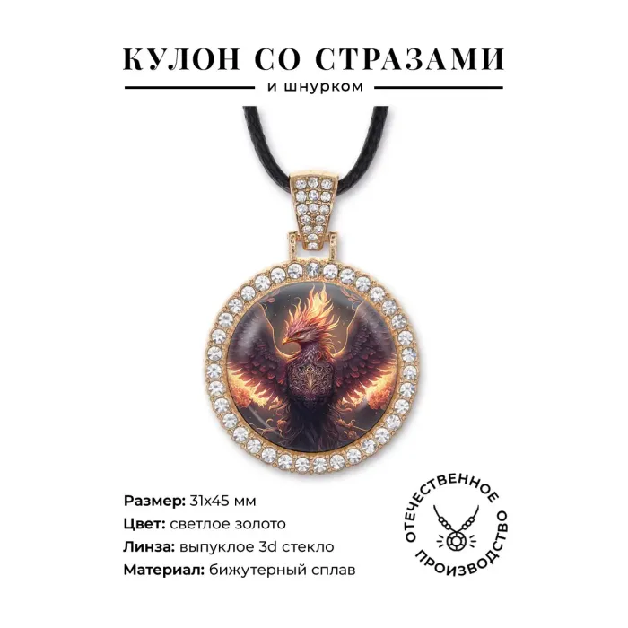 Кулон-амулет «Феникс» — это изысканный аксессуар, который не только подчеркивает стиль, но и символизирует возрождение и новые начинания. Изготовленный из бижутерного сплава с покрытием под светлое золото, он инкрустирован качественными австрийскими стразами, которые придают ему особый блеск. Защита изображения осуществляется благодаря выпуклой стеклянной линзе. В комплекте идет шнурок с застёжкой для удобства ношения. Упаковка выполнена в виде прозрачного полипропиленового пакетика без подвеса.