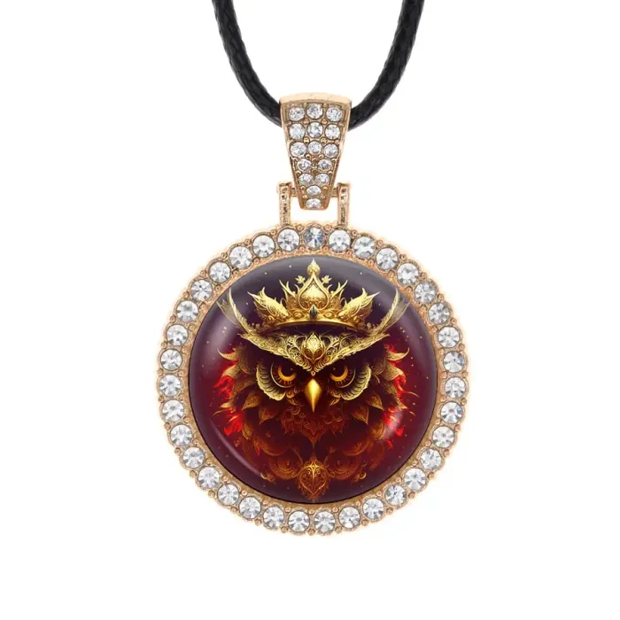 Кулон со стразами Сова с короной, цвет светлое золото ALKS0163
