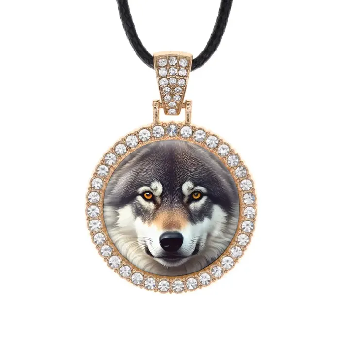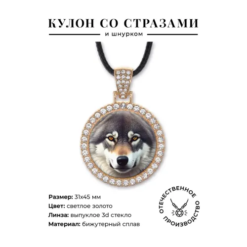 Кулон со стразами Волчица крупным планом, цвет светлое золото ALKS0168