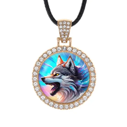 Кулон со стразами Волк в профиль, цвет светлое золото ALKS0169