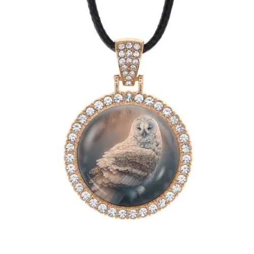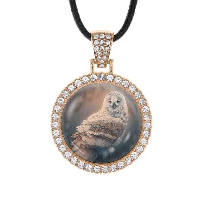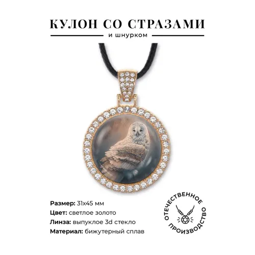 Кулон со стразами Белая сова, цвет светлое золото ALKS0172