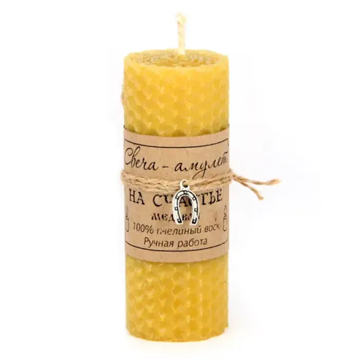 Свеча На счастье — это не просто элемент декора, а настоящий амулет из 100% натурального пчелиного воска. Сладкий медовый аромат создаёт атмосферу уюта и тепла, наполняя пространство положительной энергией. При зажигании свечи стоит загадать желание, так как считается, что оно обязательно сбудется. Размеры свечи — 10 см в высоту и 3,7 см в диаметре, что делает её идеальной для любого интерьера. Свеча станет прекрасным подарком для близких или символом надежды и удачи в доме.