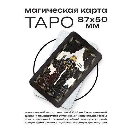 Магическая карта Таро Верховный жрец символизирует мудрость и стремление к справедливости. Этот уникальный предмет, изготовленный из металла толщиной 0,45 мм, станет отличным подарком для тех, кто ценит традиции и обучение. Размер карты составляет 50х87 мм, что делает её удобной для использования в различных ритуалах или как элемент декора. Упакована в прозрачный пакетик с описанием, она готова порадовать любого ценителя мистики и символизма.