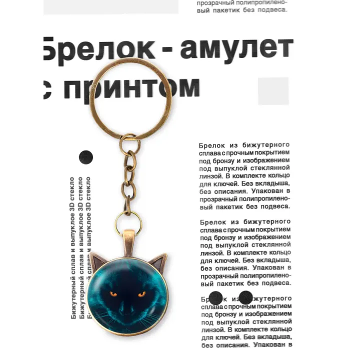 Брелок из бижутерного сплава с покрытием под бронзу и изображением, защищённым выпуклой стеклянной линзой.