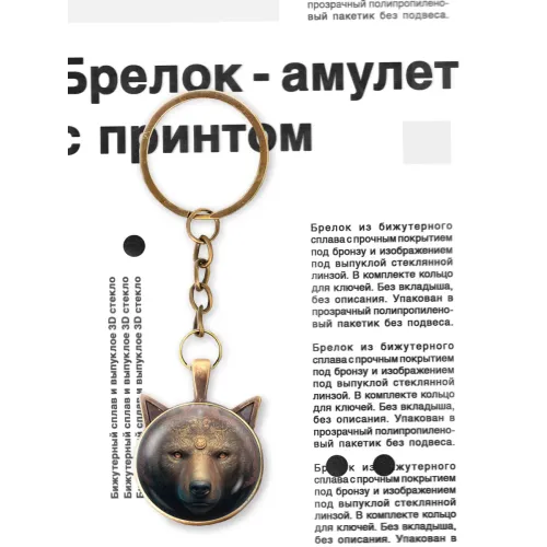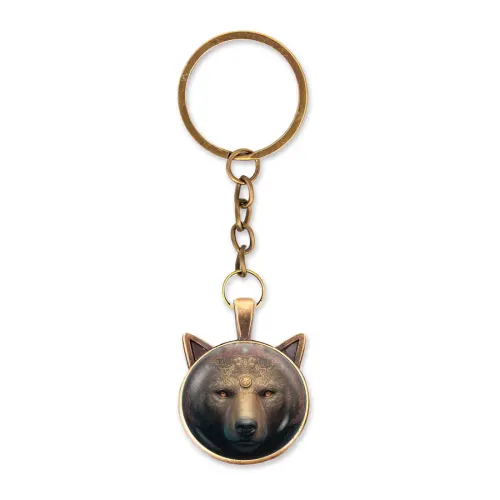 Брелок из бижутерного сплава с изображением медведицы под выпуклой стеклянной линзой.