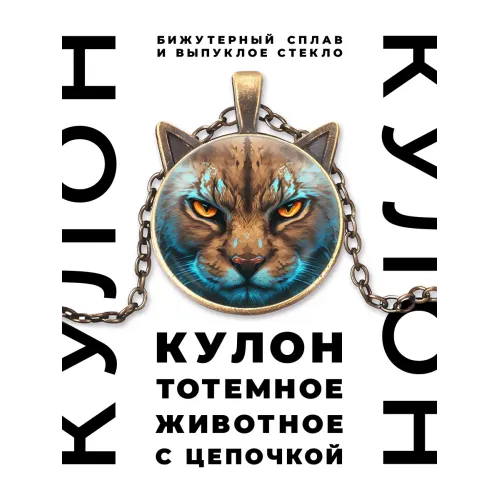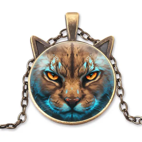 Кулон с изображением рыси из бижутерного сплава с выпуклой стеклянной линзой.