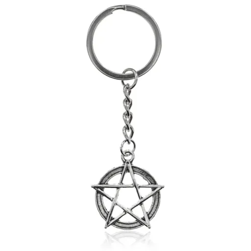 Металлический брелок в форме пентаграммы с покрытием под серебро.