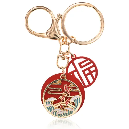 Брелок в виде двух карпов из бижутерного сплава с покрытием и эмалью.