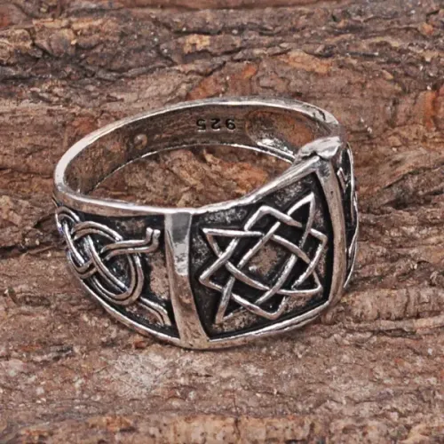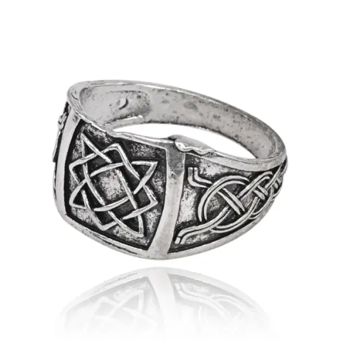 Кольцо из металла с покрытием под серебро в форме восьмиконечной звезды.