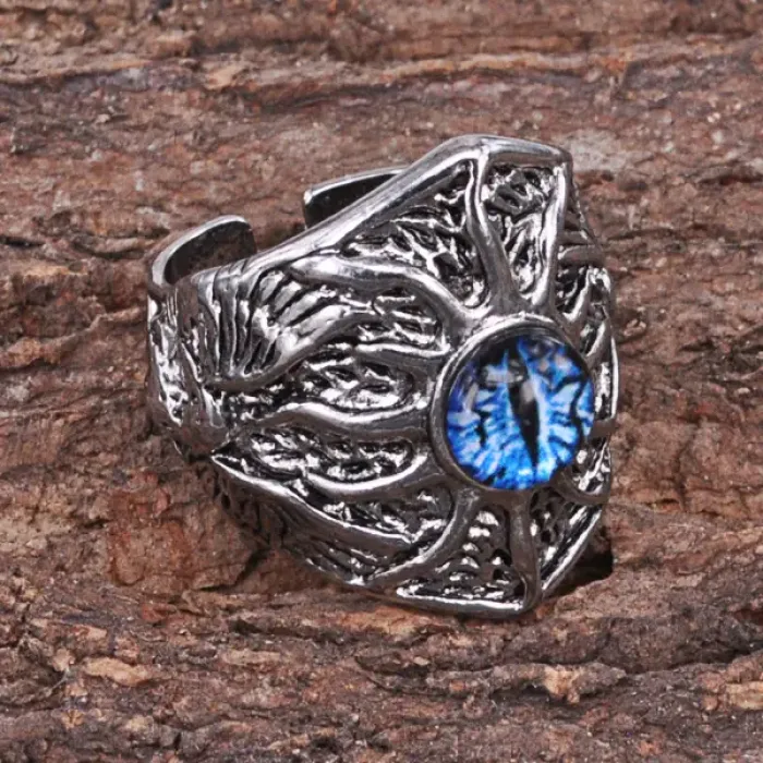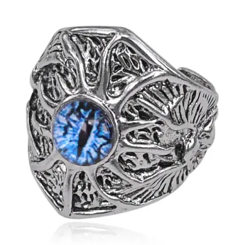 Безразмерное кольцо для ношения. Металл с покрытием под серебро и стеклянной вставкой. Дизайн в форме глаза.