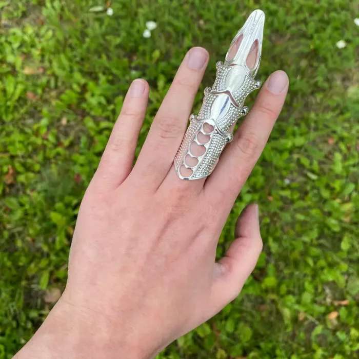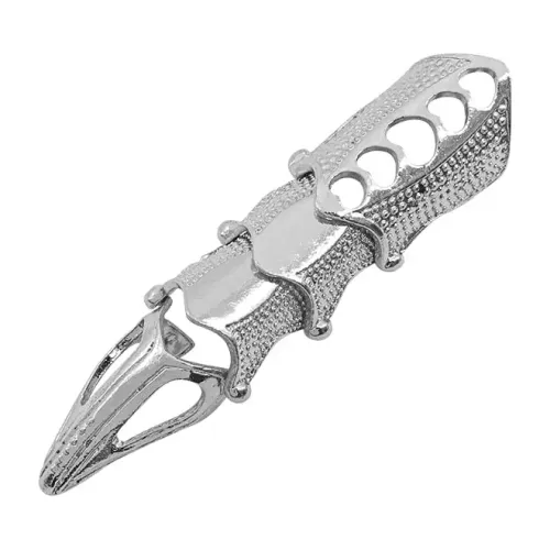 Безразмерное двойное кольцо «Коготь» для ношения в качестве аксессуара. Изготовлено из бижутерного сплава с покрытием под серебро.