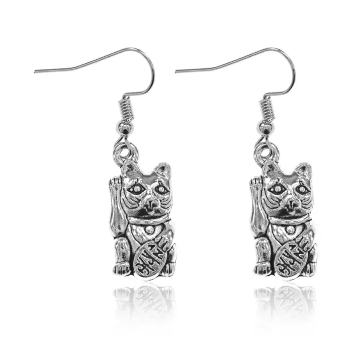 Серьги в виде фигурки Манеки-неко из бижутерного сплава с покрытием под серебро.