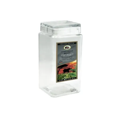 Банка изготовлена из стекла, которое не впитывает запахи и легко моется. Крышка обеспечивает плотное прилегание для сохранения свежести продуктов. Конструкция имеет кубическую форму, что способствует компактному размещению на полках.