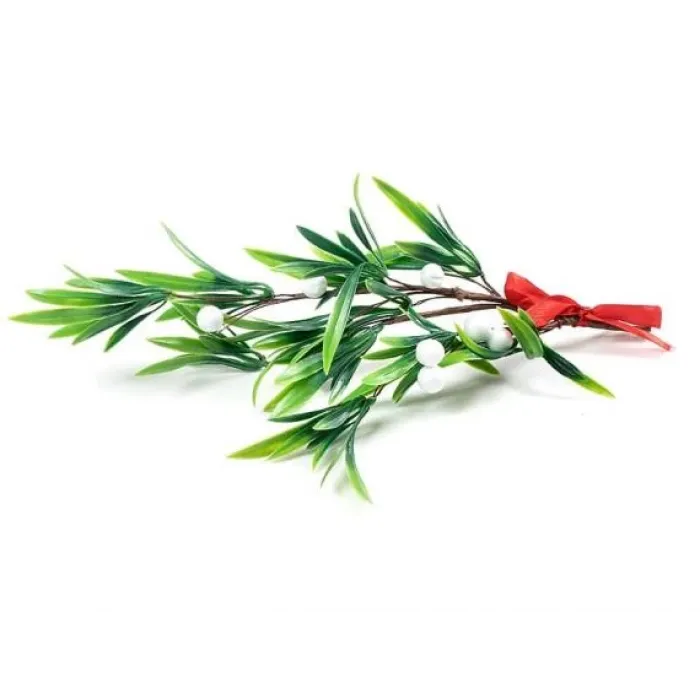 Декоративная веточка «Белые ягоды» предназначена для украшения интерьера. Она сочетает нежные листья и белые ягоды, а гибкое основание позволяет легко крепить её на различных предметах.