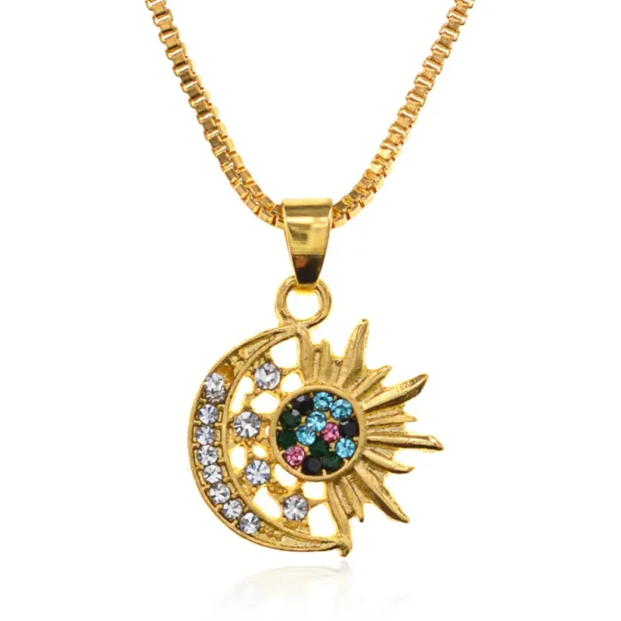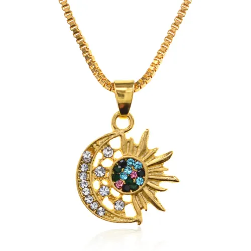 Кулон с дизайном в виде месяца и солнца. Изготовлен из бижутерного сплава.