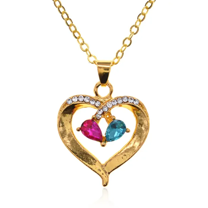 Кулон в форме сердца из бижутерного сплава с декоративными кристаллами.