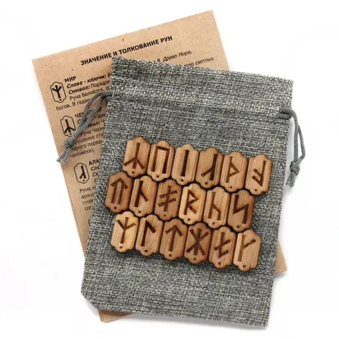 - Джутовый мешочек обеспечивает удобное хранение и переноску рун.