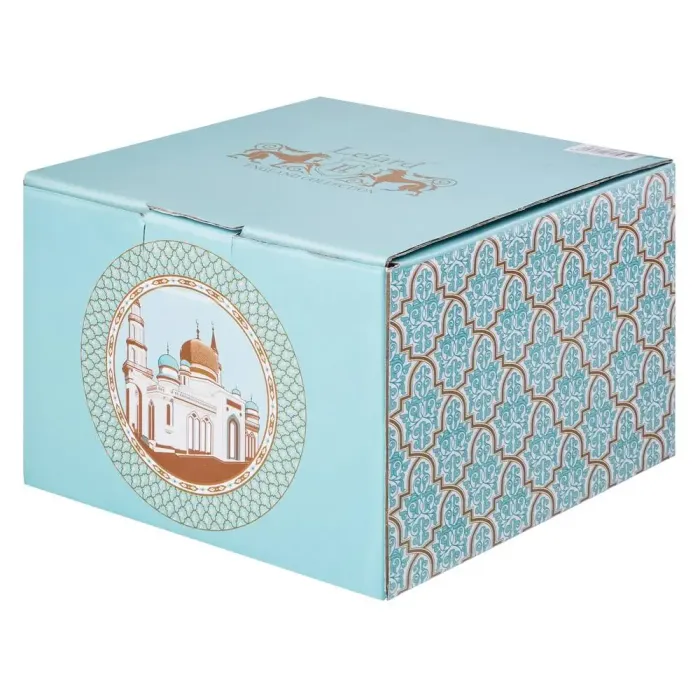 Чайная пара предназначена для подачи чая и других горячих напитков. Изделие относится к коллекции «Сура» бренда Lefard, вдохновлённой священными текстами, и отличается декоративным оформлением с золотой отделкой.