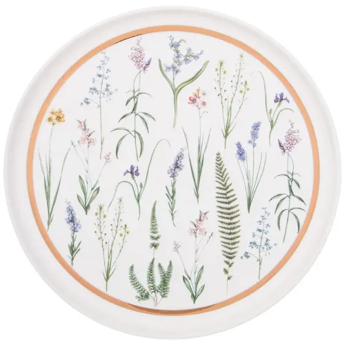 Для сохранения декоративного покрытия рекомендуется ручная мойка. Тарелку можно комбинировать с другими предметами из коллекции Grassland для создания комплекта. Дизайн с ботаническими мотивами подходит для сервировки стола в классическом или современном стиле.
