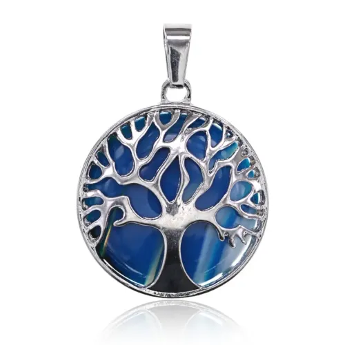 Кулон Дерево жизни d.2,7см с камнем Синий агат BJK083-23