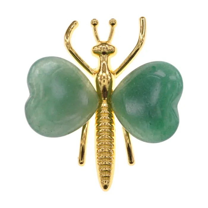 Фигурка мотылька для интерьерного декора. Материал: металл с покрытием под золото и натуральный нефрит.