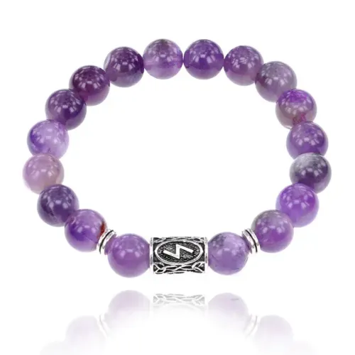 Браслет с руной Соулу и нат.камнем Аметист 10 мм