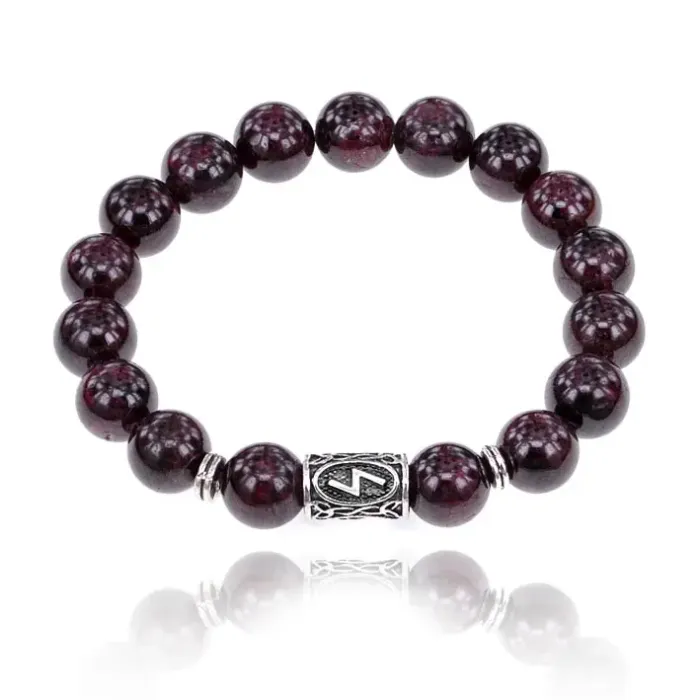 Браслет с руной Соулу и нат.камнем Гранат 10 мм BSRC-01-06