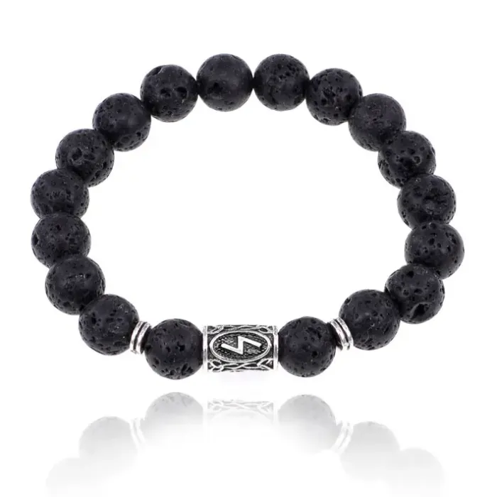 Стрейч-браслет с руной Соулу и бусиной из натурального камня лавы.