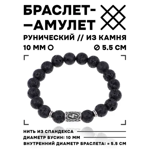 Браслет с руной Соулу и нат.камнем Лава 10 мм BSRC-01-09