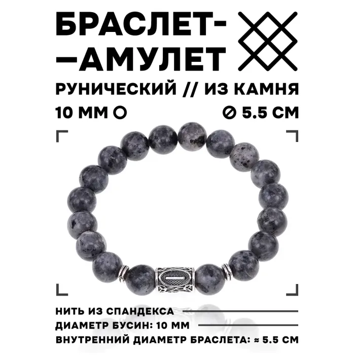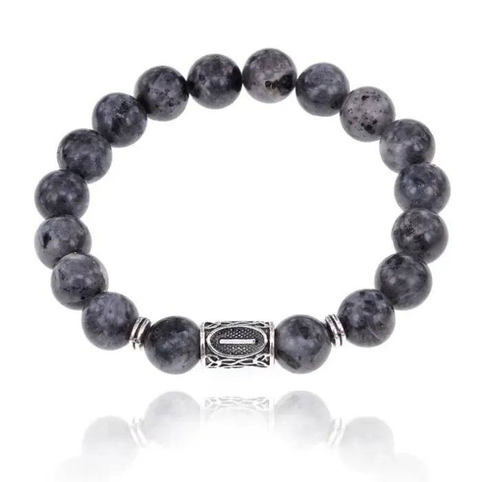 Браслет с руной Иса и нат. камнем Лабрадор 10 мм BSRC-02-08