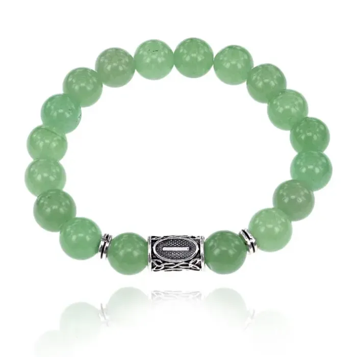 Браслет с руной Иса и нат.камнем Нефрит 10 мм
