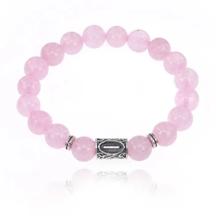 Браслет с руной Иса и нат.камнем Розовый кварц 10 мм BSRC-02-15
