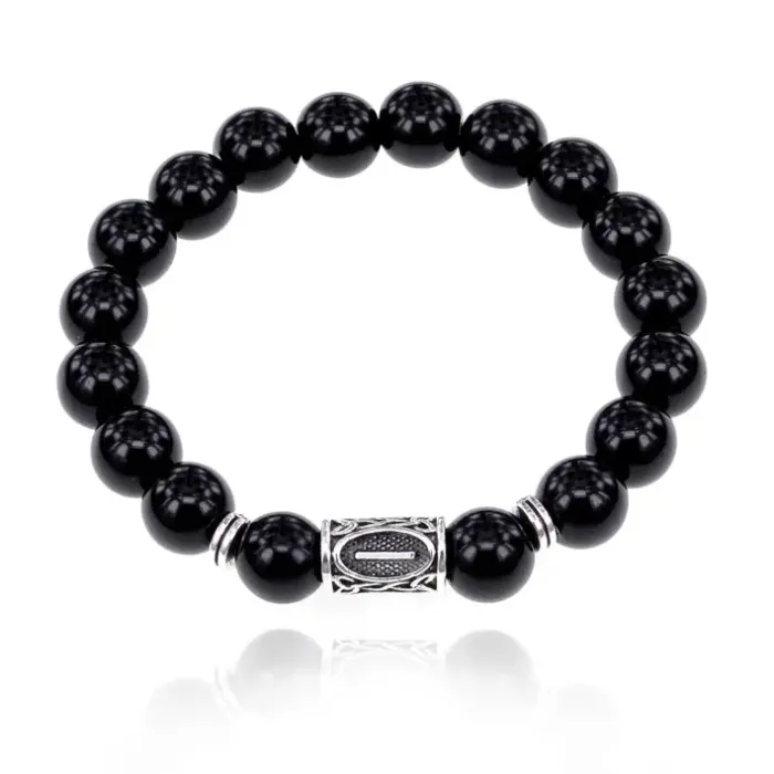 Браслет с руной Иса и нат. камнем Черный агат 10 мм BSRC-02-23