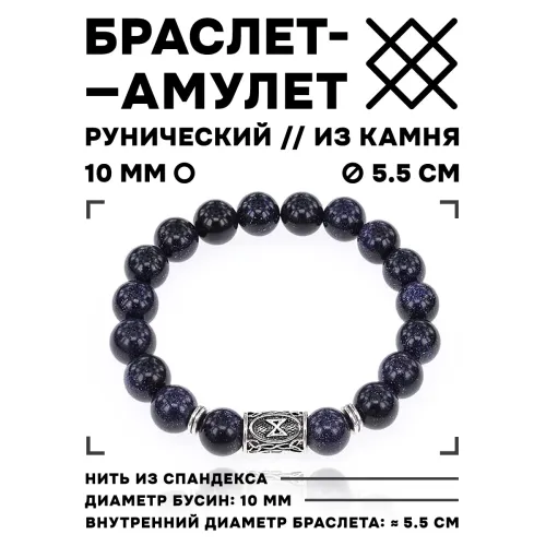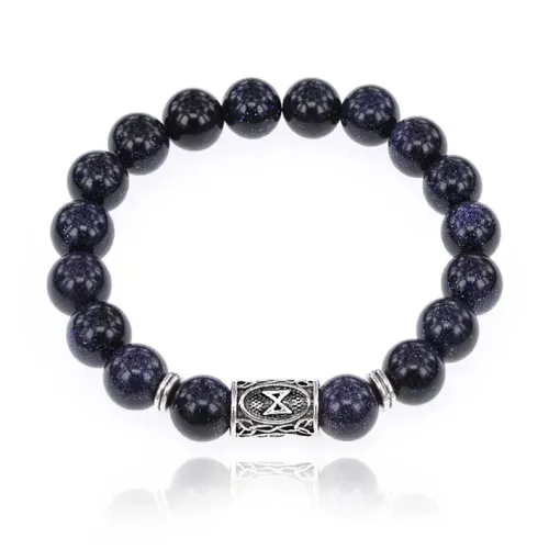 Браслет с руной Дагаз и синт. камнем Синий авантюрин 10 мм BSRC-03-02
