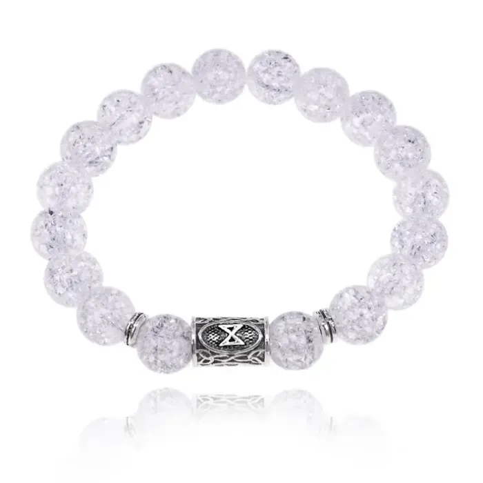 Браслет с руной Дагаз и синт. камнем Сахарный кварц 10 мм BSRC-03-16