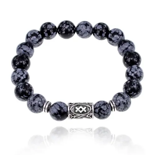 Браслет с руной Ингуз и нат.камнем Снежный обсидиан 10 мм BSRC-05-14