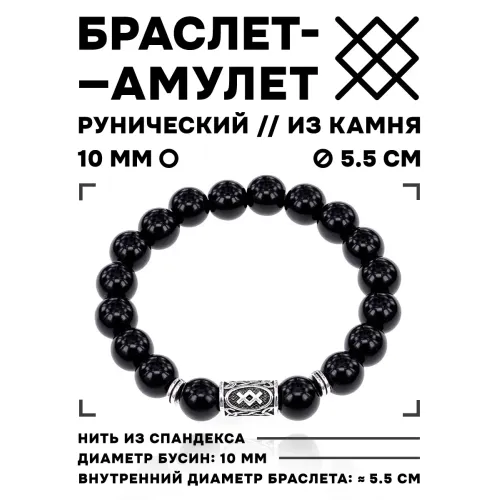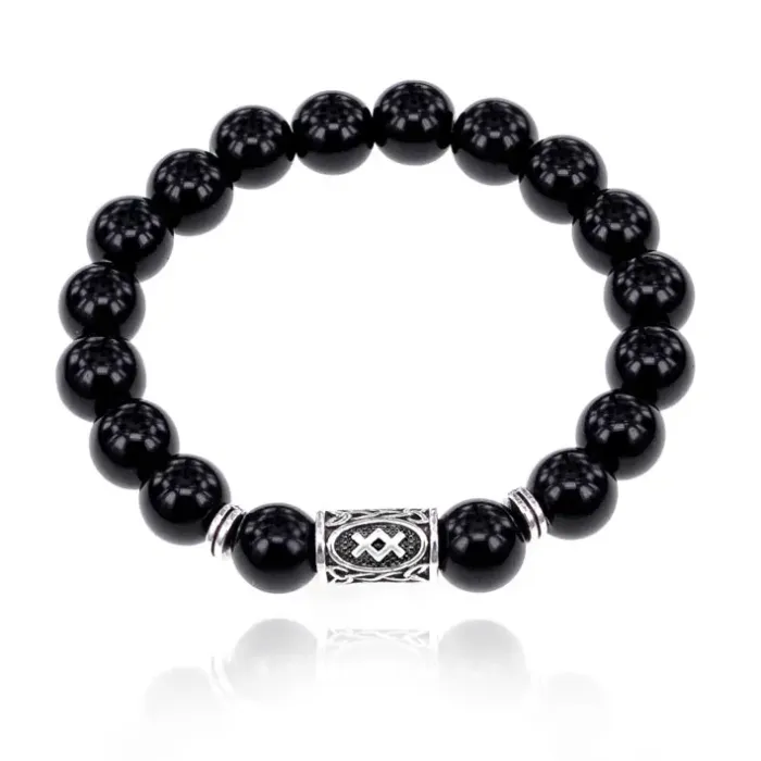 Браслет с руной Ингуз и нат.камнем Черный агат 10 мм BSRC-05-23