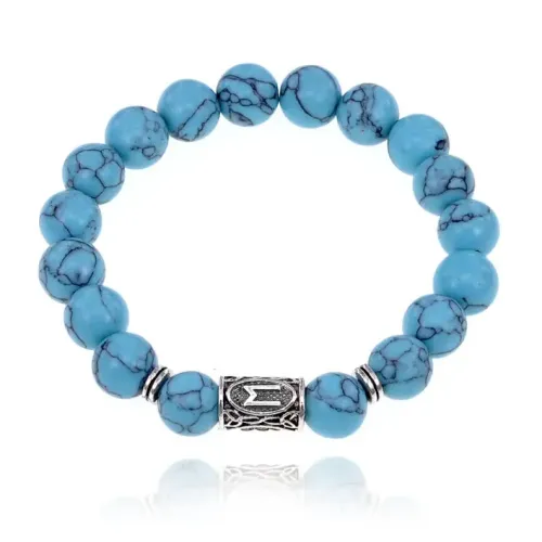 Браслет с руной Эваз и синт.камнем Бирюза 10 мм BSRC-06-05
