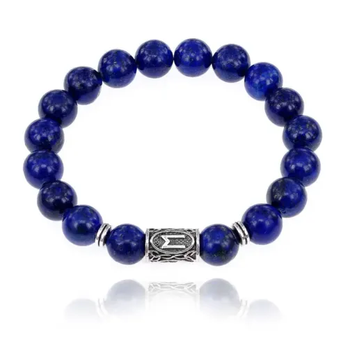 Браслет с руной Эваз и нат.камнем Лазурит 10 мм BSRC-06-10