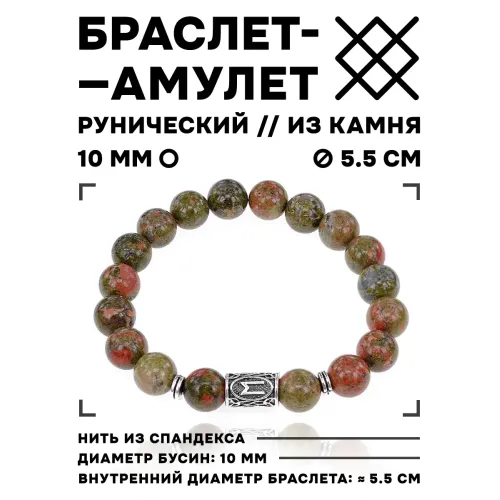 Браслет с руной Эваз и нат.камнем Унакит 10 мм BSRC-06-20