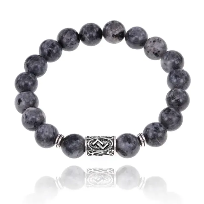 Браслет с руной Йера, выполненный из натурального камня лабрадор.