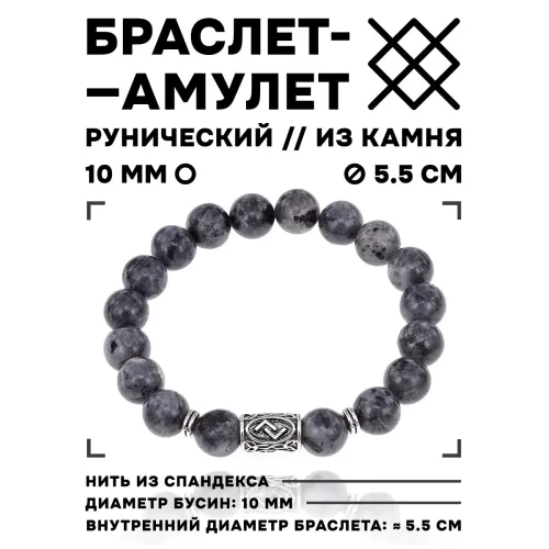 Браслет с руной Йера и натуральным камнем Лабрадор 10 мм
