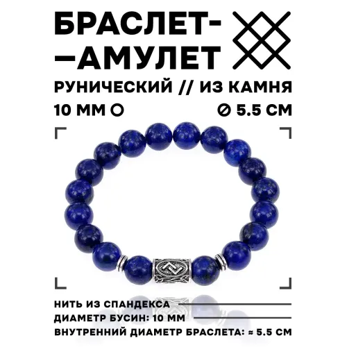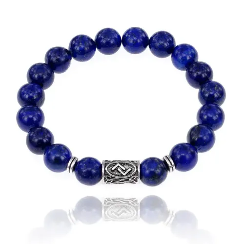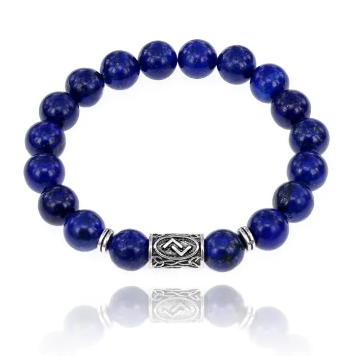 Браслет с руной Йера и нат.камнем Лазурит 10 мм BSRC-07-10