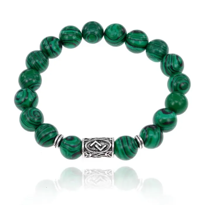 Браслет с руной Йера и синт. камнем Малахит 10 мм BSRC-07-12