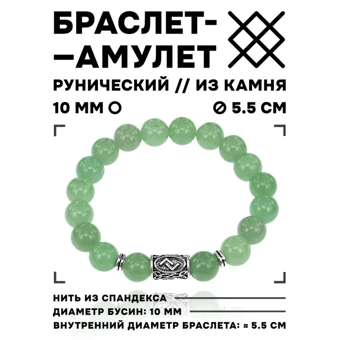 Браслет с руной Йера и нат.камнем Нефрит 10 мм BSRC-07-13