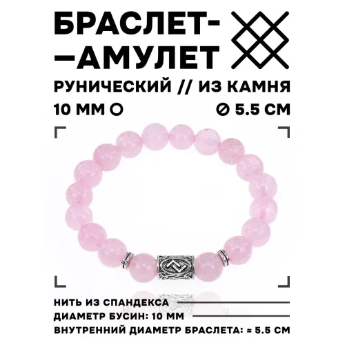 Браслет с руной Йера и нат.камнем Розовый кварц 10 мм BSRC-07-15