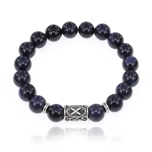 Браслет с руной Гебо и синтетическим камнем синий авантюрин диаметром 10 мм.