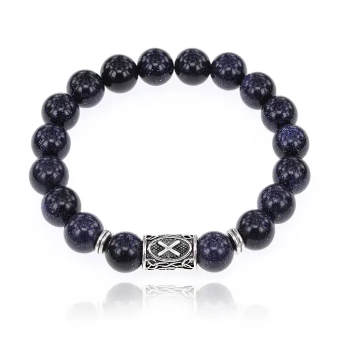 Браслет с руной Гебо и синт.камнем Синий авантюрин 10 мм BSRC-08-02